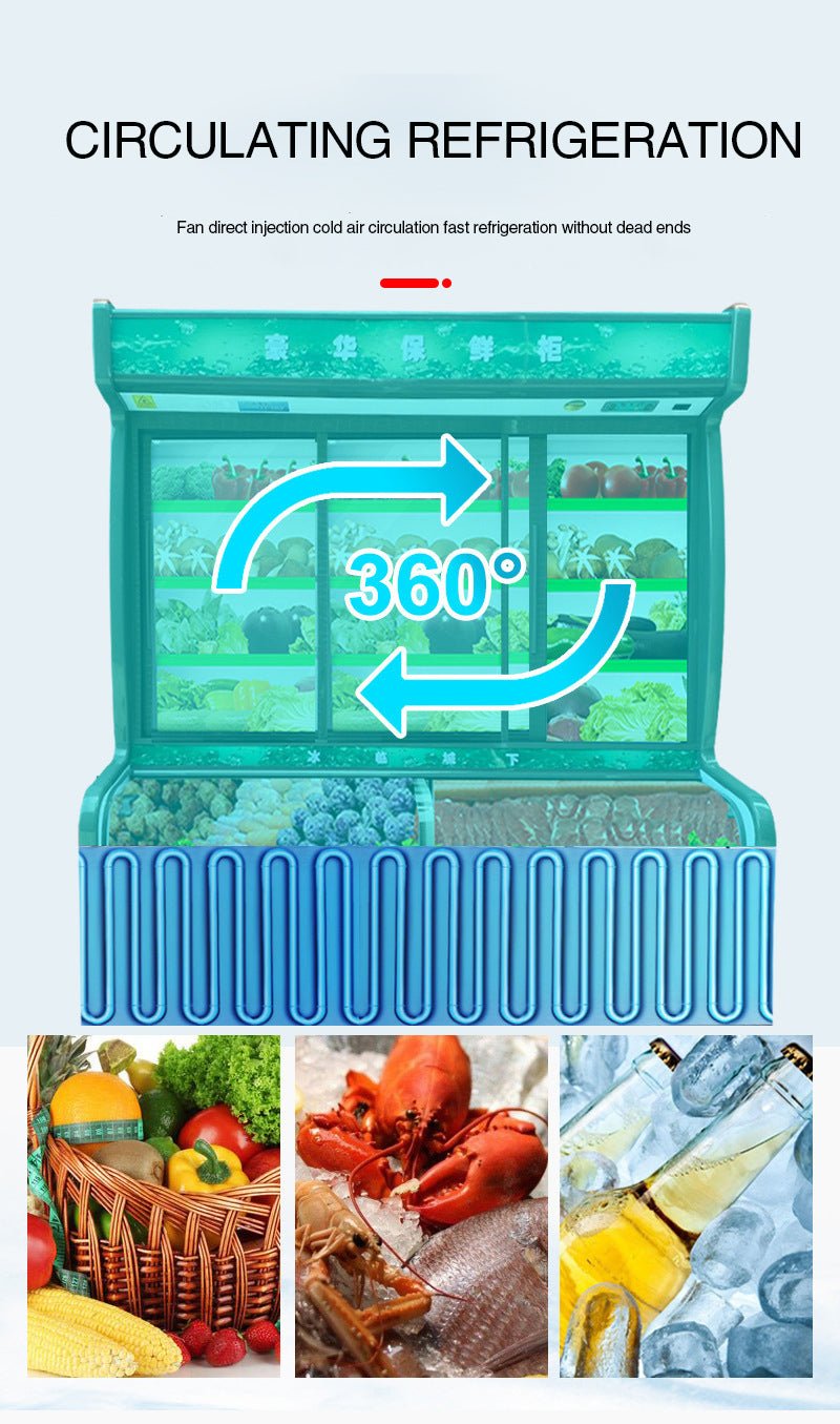 1.Three-temperature a la carte display freezer express and publicize the characteristics of the products and convey the interest in sales, many showcases play an unusual decorative and beautifying role through the exquisite furnishings with gorgeous colors and unique shapes.