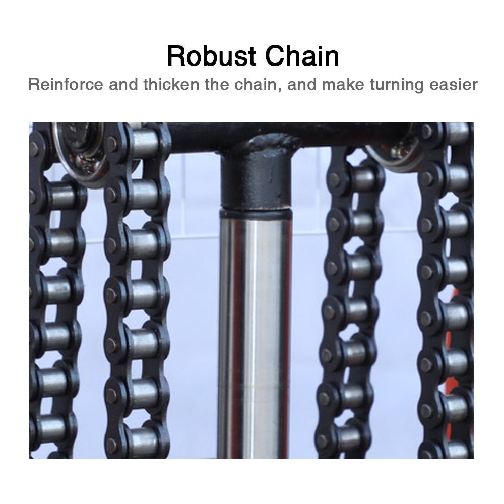 to work without having to perform extreme body movements. Metal grid protects user from lift chains.