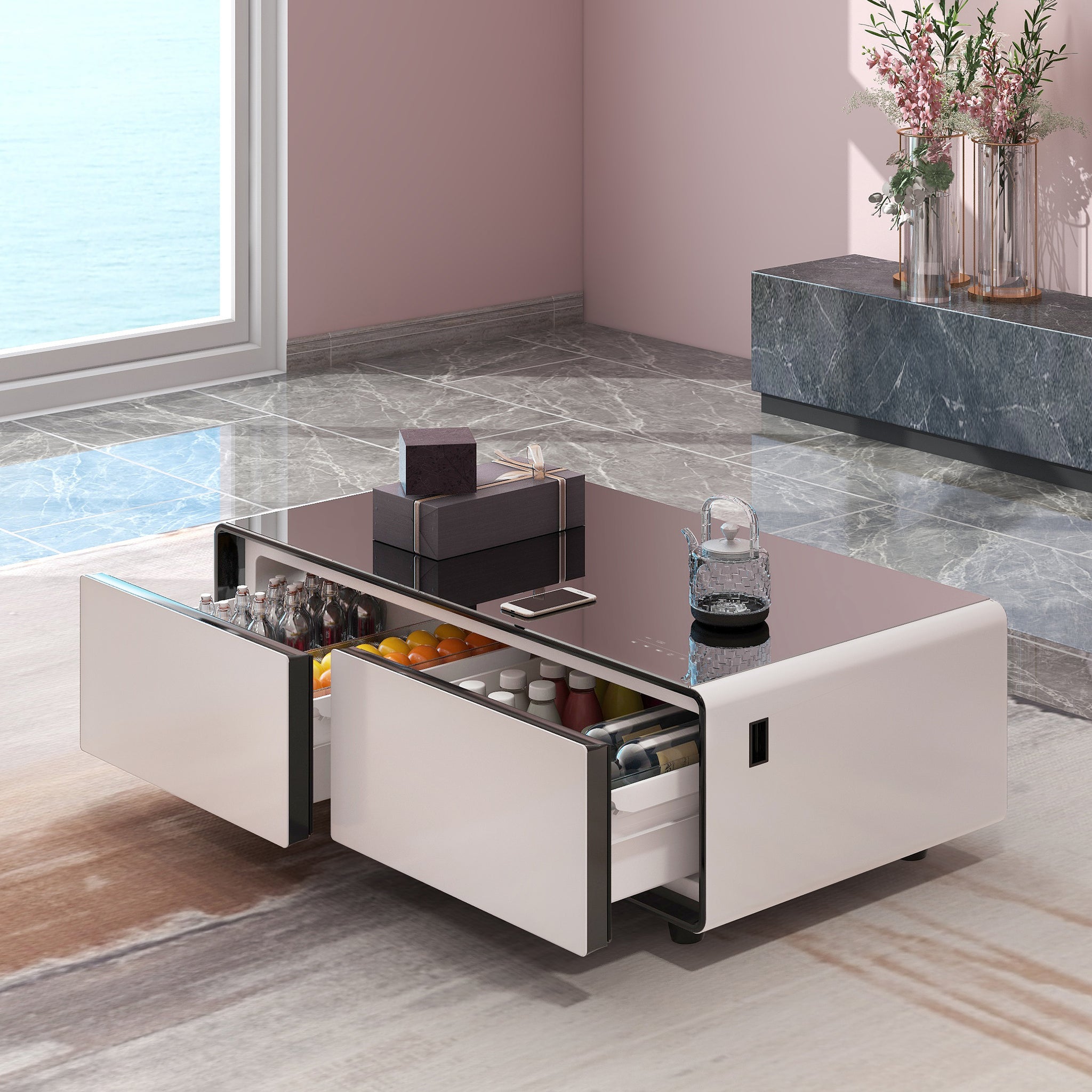 Modern Smart Coffee Table with Built-in Fridge Power Socket White