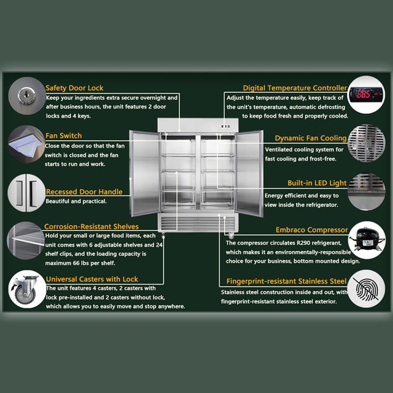 54"W Refrigerator 2 Section 2 Door Stainless Steel Reach-in 42.2 Cu.ft.