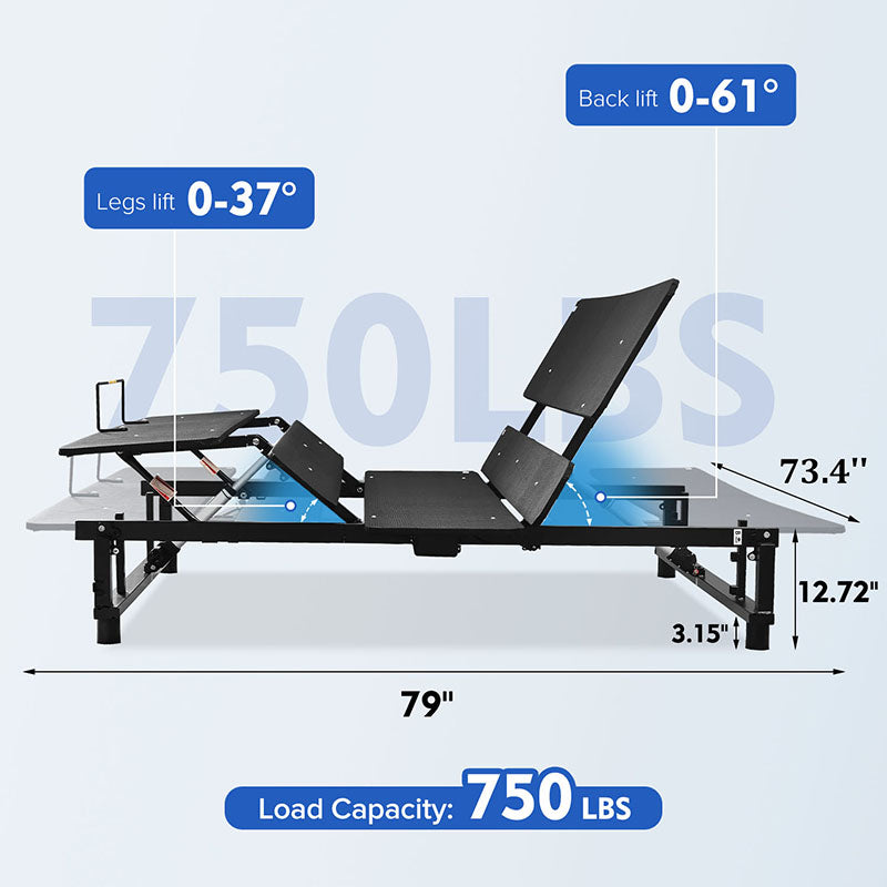 • Adjustable Head and Foot Positions: Customize your comfort with the ability to separate and adjust the head and foot positions. The head can be adjusted from 0 to 61 degrees, and the foot can be adjusted from 0 to 37 degrees, allowing you to find the perfect sleeping or lounging position.